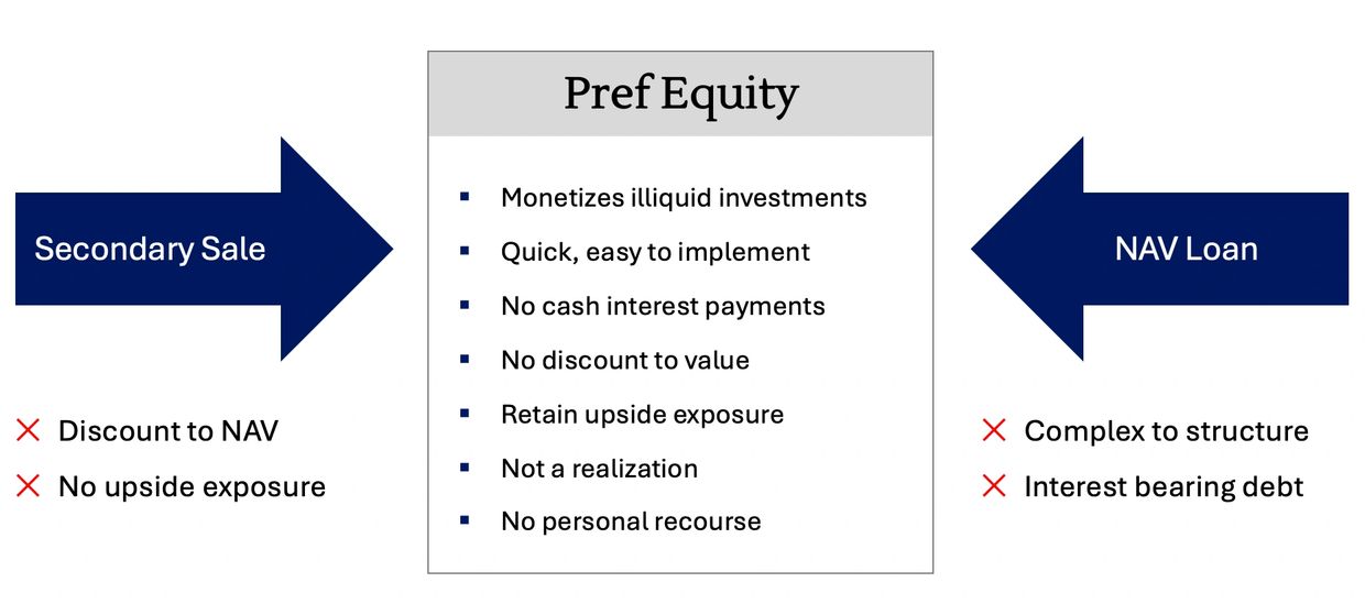 We enable sponsors to leverage fund or equity interests to generate liquidity, free of monthly interest payments or strict loan obligations.
